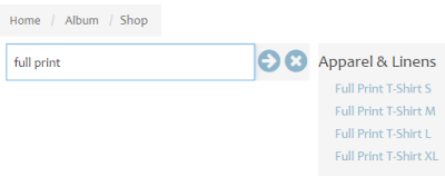 - Find Full Print Shirts in Apparel or type Full Print into the search box. If you are browsing on a phone, the arrow button will enter the search term and remove your keyboard so you can see the whole screen. The X button brings back all products and clears the search box.